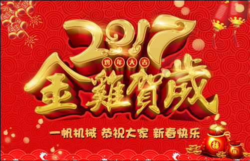 一帆機械將在春節(jié)期間放假,時間:2017年1月24日——2月3日。期間有任何問題可在線留言,我們將在假期結(jié)束的第一時間與您聯(lián)系。謝謝!