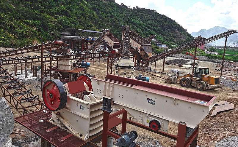 設(shè)備配置:顎式破碎機(jī)1臺(tái)、反擊式破碎機(jī)1臺(tái)、圓錐破碎機(jī)1臺(tái)、給料機(jī)1臺(tái)、振動(dòng)篩2臺(tái)、輕物質(zhì)處理器1臺(tái)